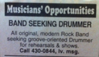(that’s enough drummer wanted ads – ed)